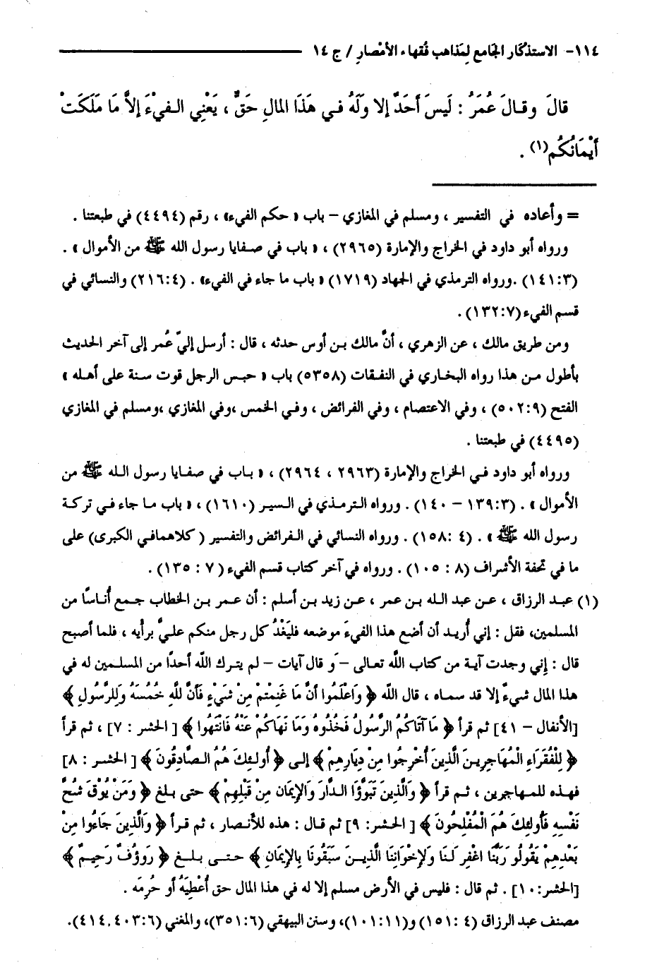 كتاب الاستذكار الجامع لمذاهب فقهاء الأمصار - ت: قلعجي (اسم الجزء: 14)