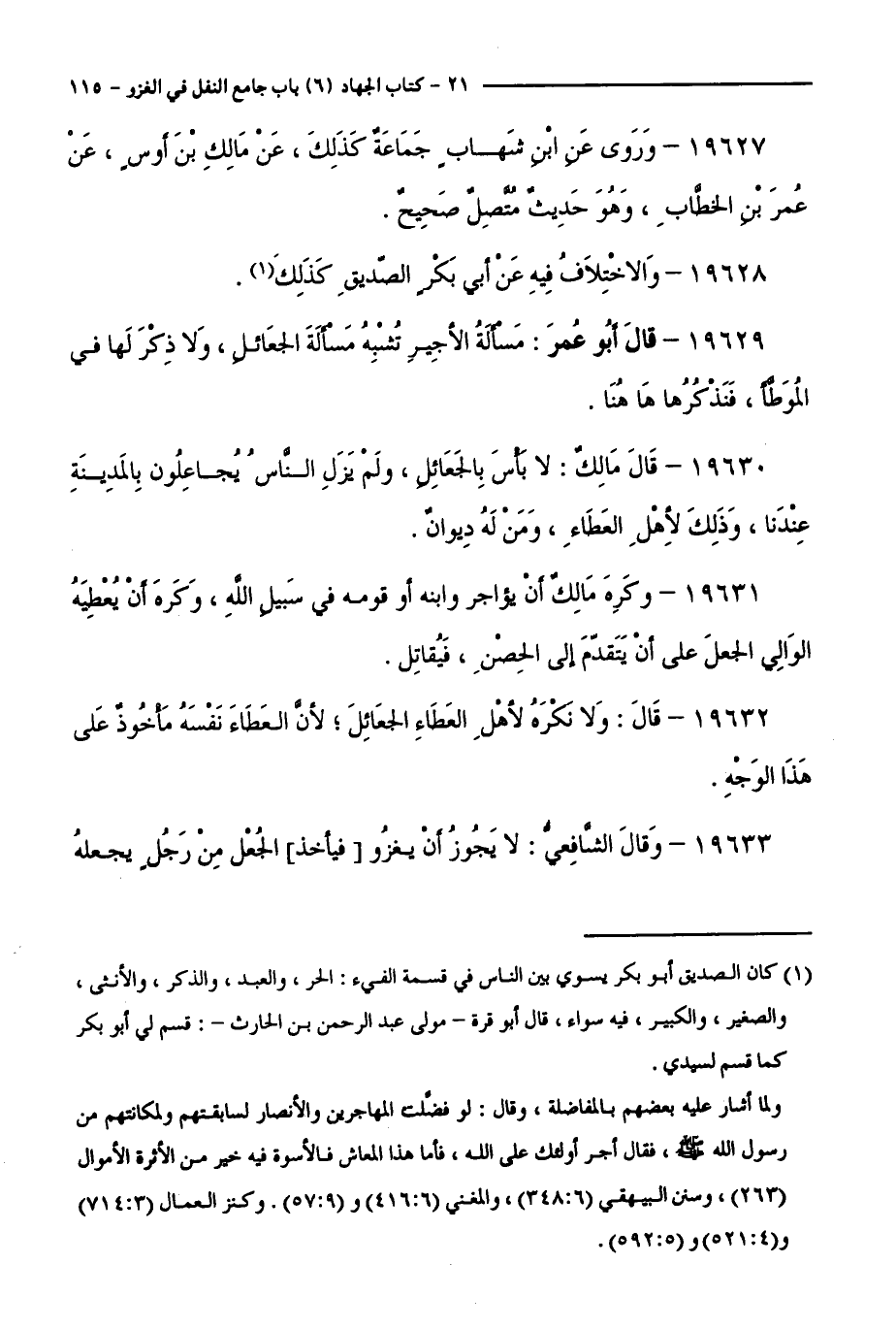 19633 - وَقَالَ الشَّافِعِيُّ: لَا يَجُوزُ أَنْ يَغْزُوَ فَيَأْخُذَ الْجُعْلَ مِنْ رَجُلٍ يَجْعَلُهُ