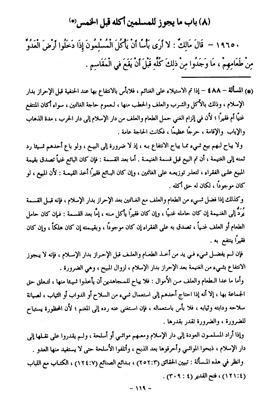 ( 8) بَابُ مَا يَجُوزُ لِلْمُسْلِمِينَ أَكْلُهُ قَبْلَ الْخُمُسِ
