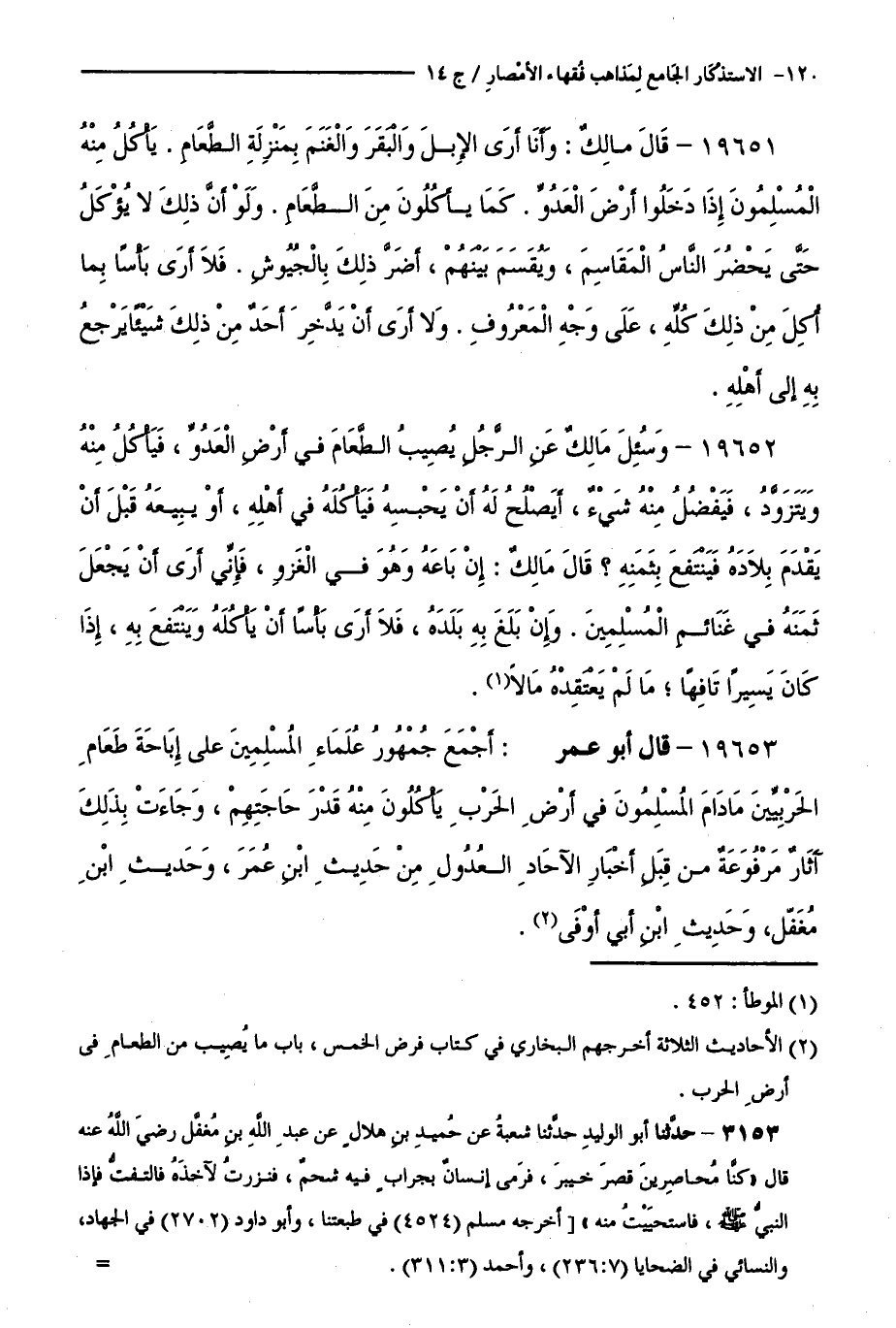 كتاب الاستذكار الجامع لمذاهب فقهاء الأمصار - ت: قلعجي (اسم الجزء: 14)
