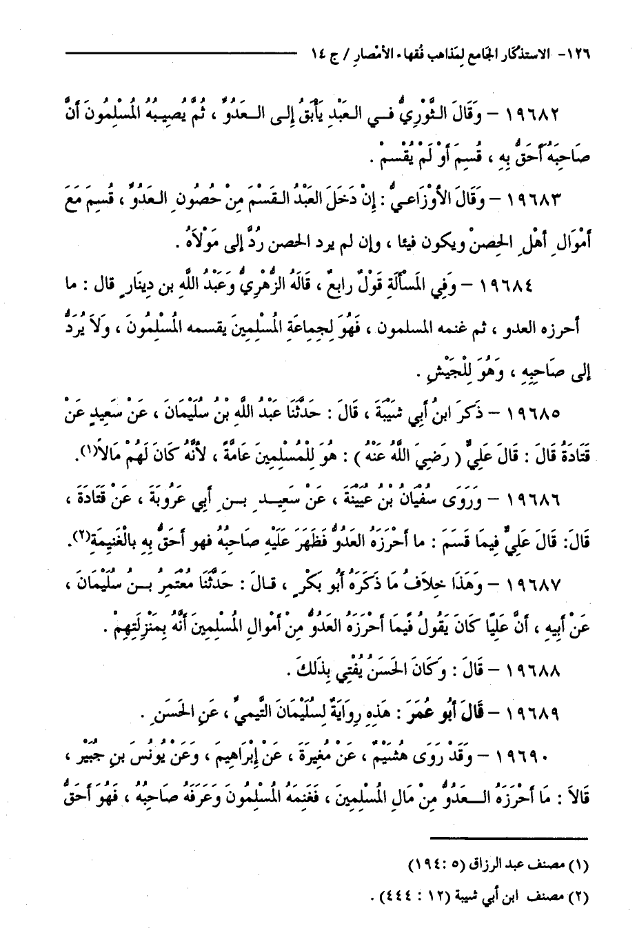 كتاب الاستذكار الجامع لمذاهب فقهاء الأمصار - ت: قلعجي (اسم الجزء: 14)