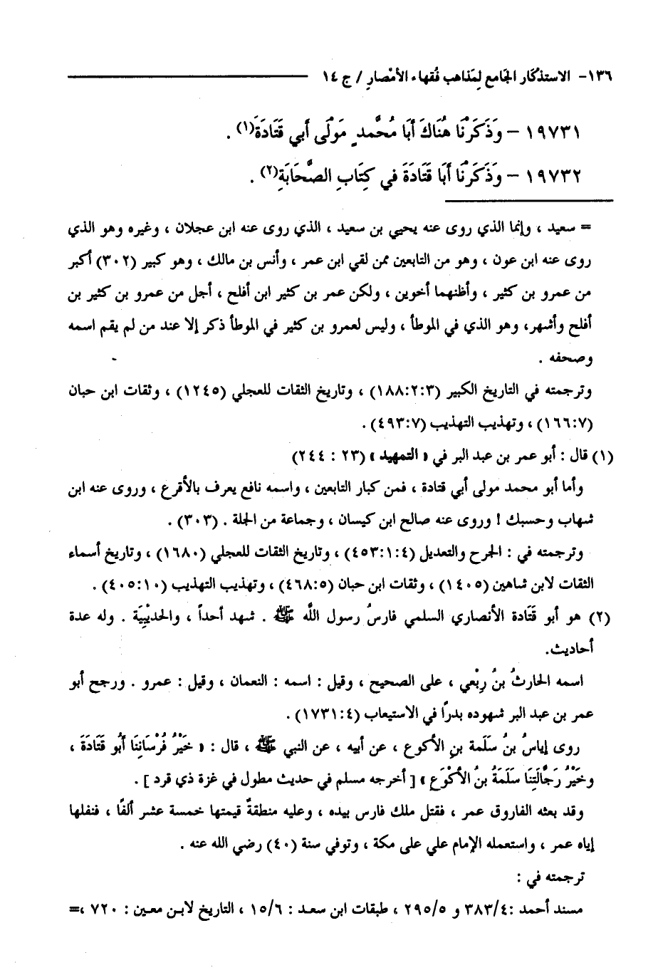 كتاب الاستذكار الجامع لمذاهب فقهاء الأمصار - ت: قلعجي (اسم الجزء: 14)