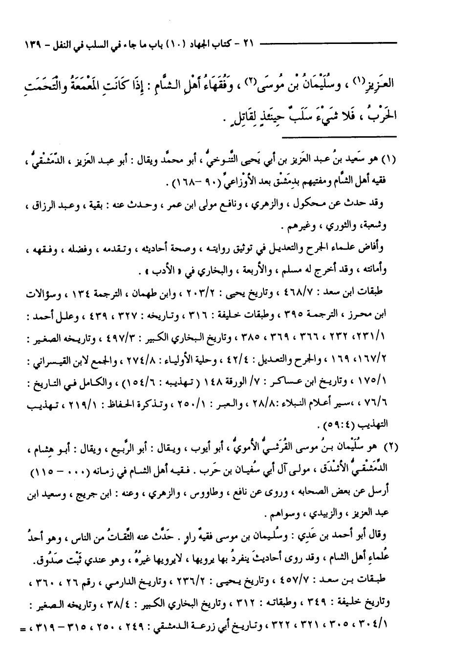 الْعَزِيزِ، وَسُلَيْمَانُ بْنُ مُوسَى، وَفُقَهَاءُ أَهْلِ الشَّامِ: إِذَا كَانَتِ الْمَعْمَعَةُ وَالْتَحَمَتِ الْحَرْبُ، فَلَا شَيْءَ سَلَبٌ حِينَئِذٍ لِقَاتِلٍ.
