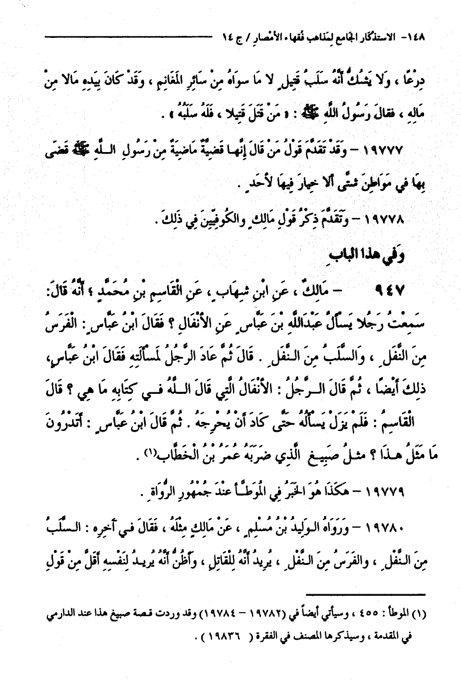 كتاب الاستذكار الجامع لمذاهب فقهاء الأمصار - ت: قلعجي (اسم الجزء: 14)