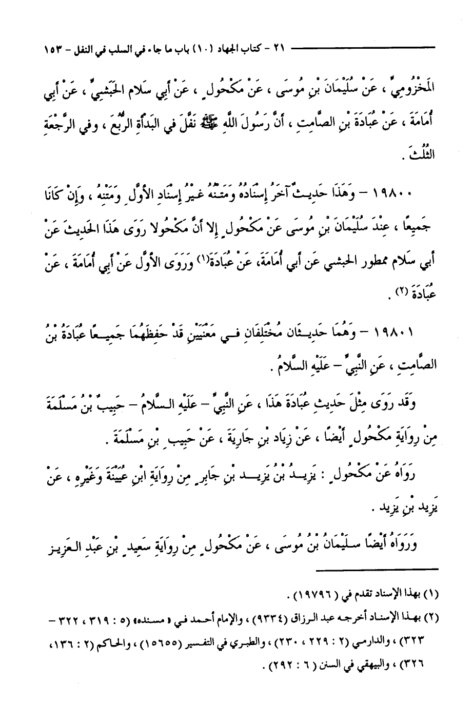 19800 - وَهَذَا حَدِيثٌ آخَرُ إِسْنَادُهُ وَمَتْنُهُ غَيْرُ إِسْنَادِ الْأَوَّلِ وَمَتْنِهِ، وَإِنْ كَانَا جَمِيعًا، عِنْدَ سُلَيْمَانَ بْنِ مُوسَى عَنْ مَكْحُولٍ إِلَّا أَنَّ مَكْحُولًا رَوَى هَذَا الْحَدِيثَ عَنْ أَبِي سَلَامٍ مَمْطُورٍ الْحَبَشِيِّ عَنْ أَبِي أُمَامَةَ عَنْ عُبَادَةَ وَرَوَى الْأَوَّلَ عَنْ أَبِي أُمَامَةَ، عَنْ عُبَادَةَ.