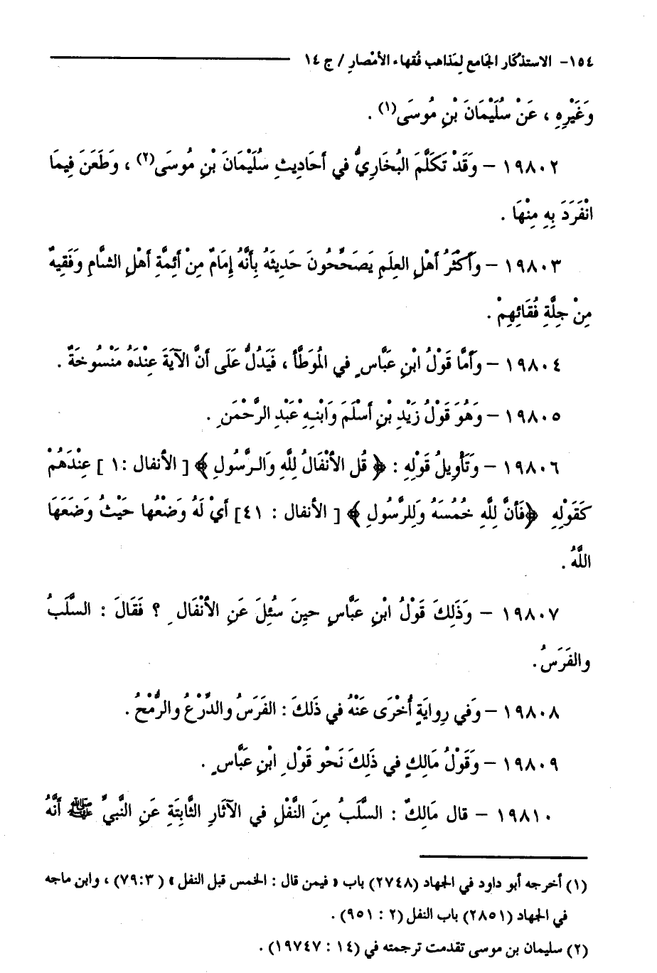 19810 - قَالَ مَالِكٌ: السَّلَبُ مِنَ النَّفْلِ فِي الْآثَارِ الثَّابِتَةِ عَنِ النَّبِيِّ - صَلَّى اللَّهُ عَلَيْهِ وَسَلَّمَ - أَنَّهُ
