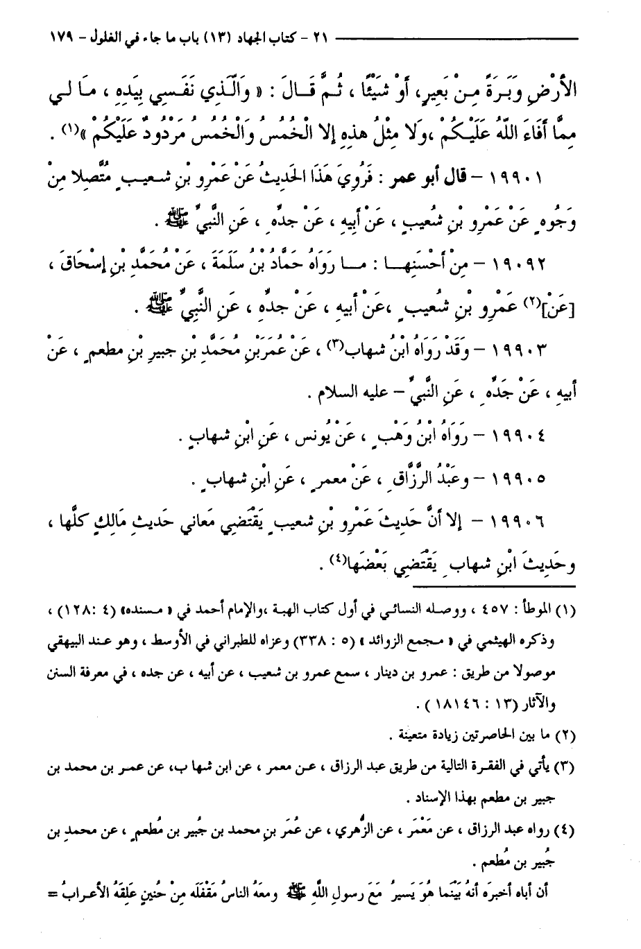 19901 - قَالَ أَبُو عُمَرَ: فَرُوِيَ هَذَا الْحَدِيثُ عَنْ عَمْرِو بْنِ شُعَيْبٍ مُتَّصِلًا مِنْ وُجُوهٍ عَنْ عَمْرِو بْنِ شُعَيْبٍ، عَنْ أَبِيهِ، عَنْ جَدِّهِ، عَنِ النَّبِيِّ - صَلَّى اللَّهُ عَلَيْهِ وَسَلَّمَ -.