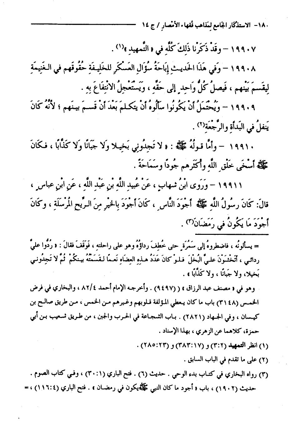 كتاب الاستذكار الجامع لمذاهب فقهاء الأمصار - ت: قلعجي (اسم الجزء: 14)