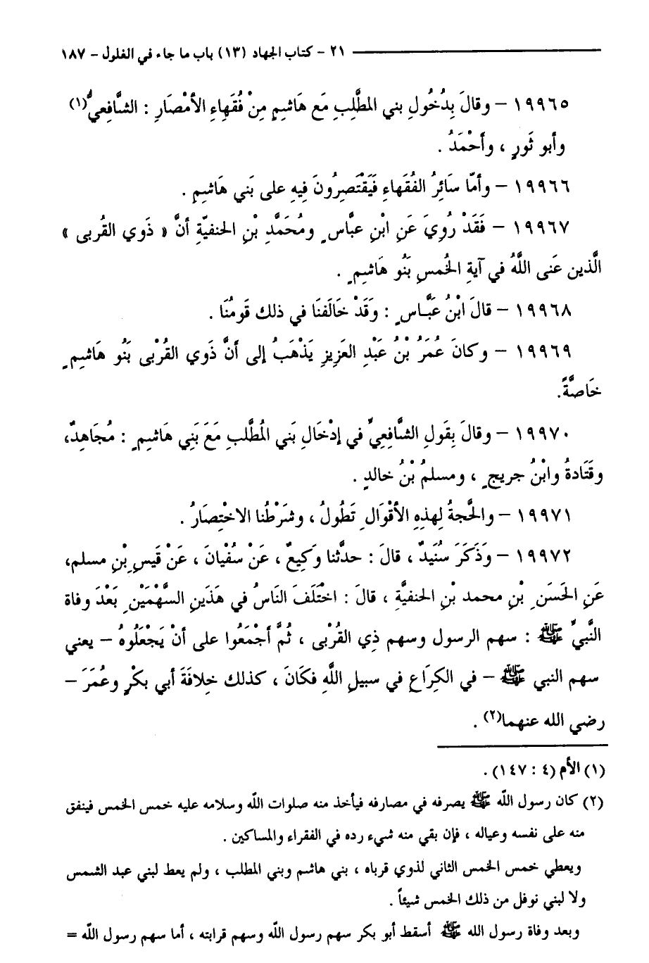 19967 - فَقَدْ رُوِيَ عَنِ ابْنِ عَبَّاسٍ وَمُحَمَّدِ ابْنِ الْحَنَفِيَّةِ أَنَّ " ذَوِي الْقُرْبَى "، الَّذِينَ عَنَى اللَّهُ فِي آيَةِ الْخُمُسِ بَنُو هَاشِمٍ.