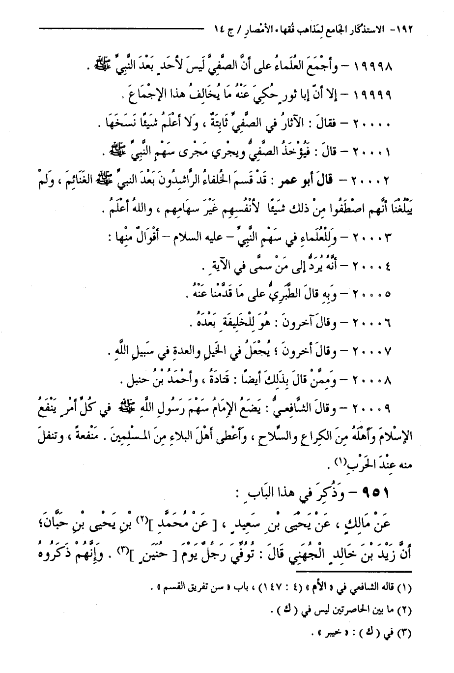 20001 - قَالَ: فَيُؤْخَذُ الصَّفِيُّ وَيُجْرَى مَجْرَى سَهْمِ النَّبِيِّ - صَلَّى اللَّهُ عَلَيْهِ وَسَلَّمَ -.