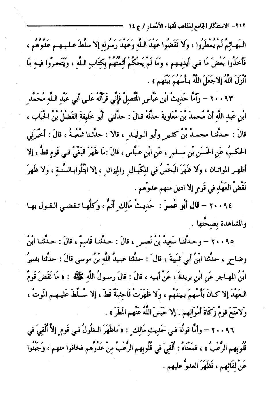 كتاب الاستذكار الجامع لمذاهب فقهاء الأمصار - ت: قلعجي (اسم الجزء: 14)