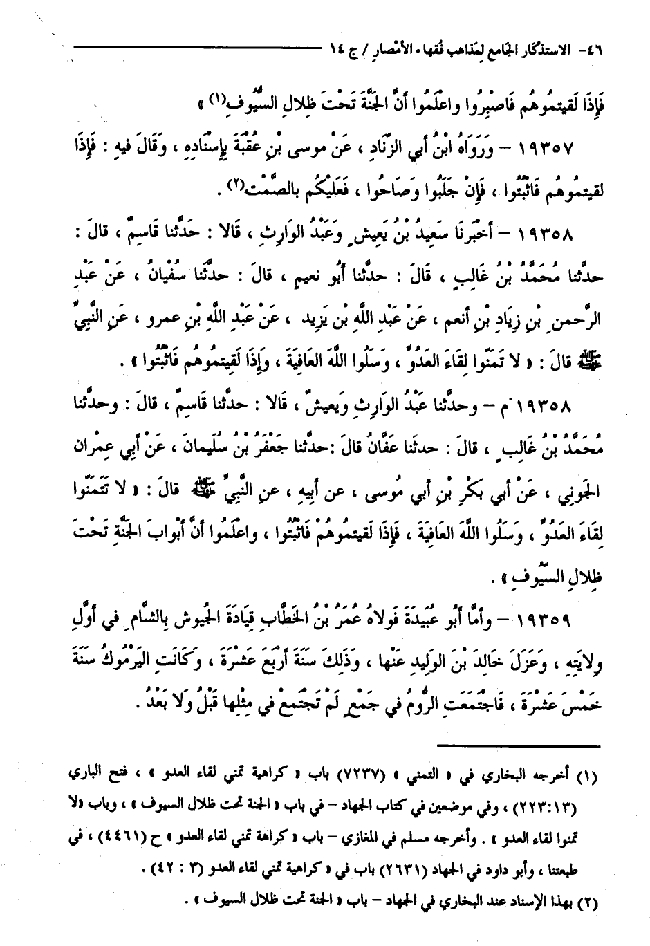 فَإِذَا لَقِيتُمُوهُمْ فَاصْبِرُوا وَاعْلَمُوا أَنَّ الْجَنَّةَ تَحْتَ ظِلَالِ السُّيُوفِ.