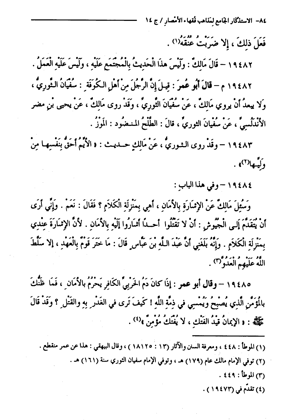 كتاب الاستذكار الجامع لمذاهب فقهاء الأمصار - ت: قلعجي (اسم الجزء: 14)