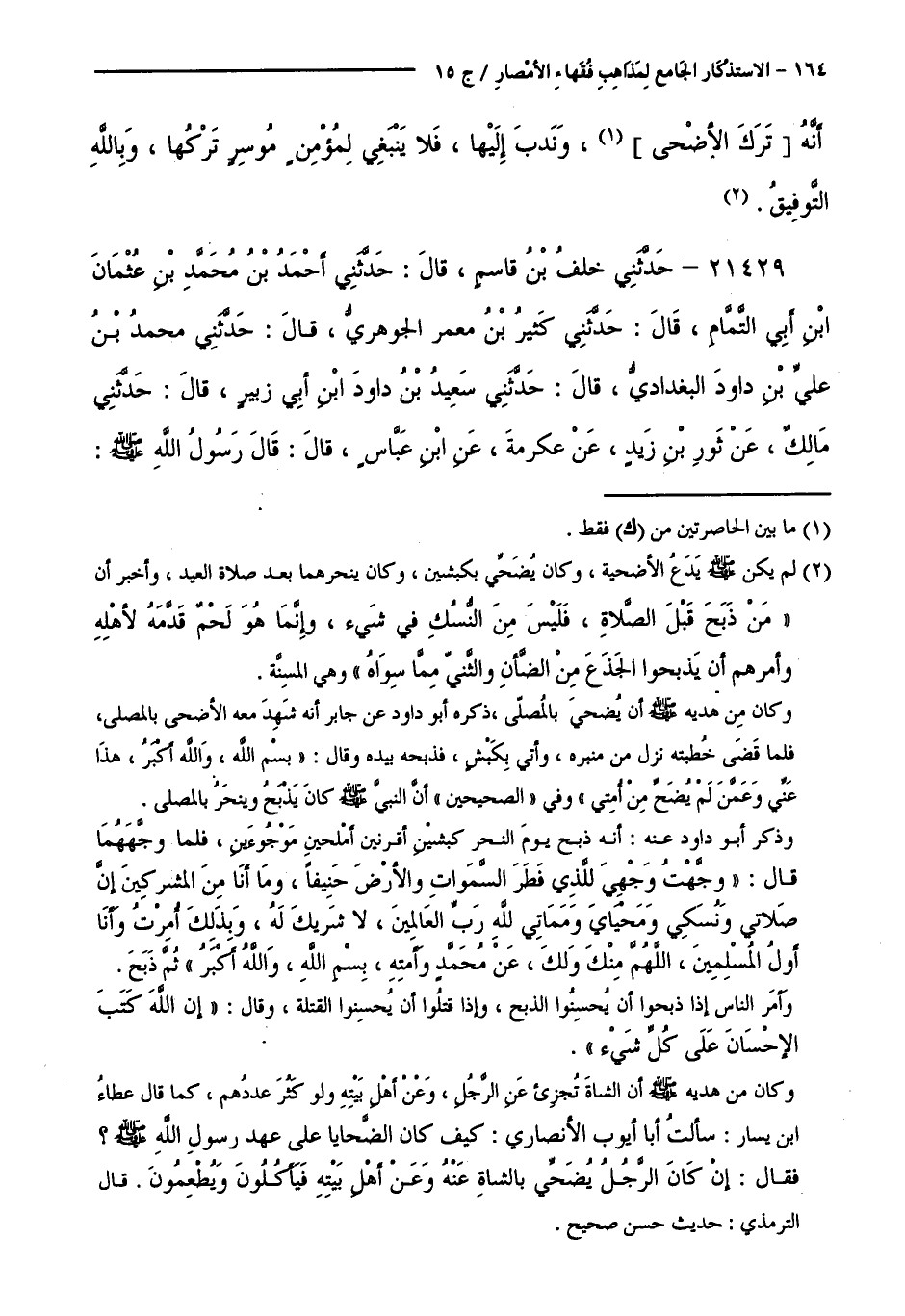 كتاب الاستذكار الجامع لمذاهب فقهاء الأمصار - ت: قلعجي (اسم الجزء: 15)
