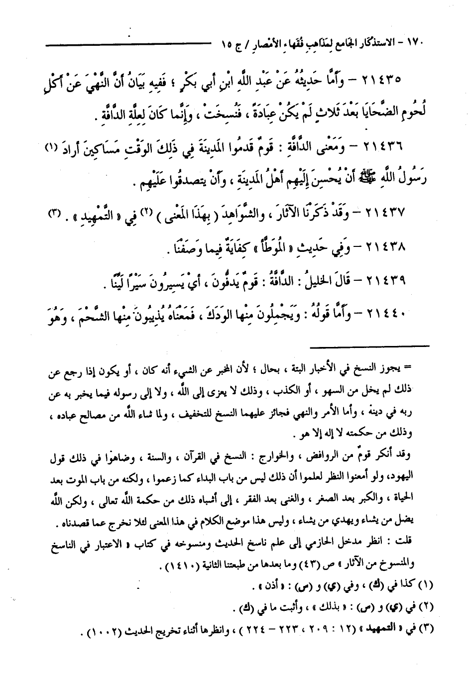 كتاب الاستذكار الجامع لمذاهب فقهاء الأمصار - ت: قلعجي (اسم الجزء: 15)