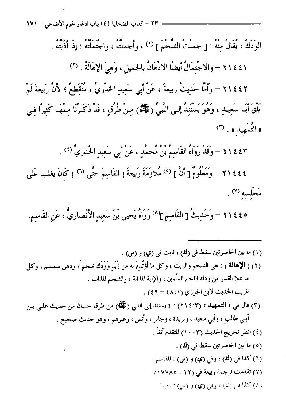 21445 - وَحَدِيثُ الْقَاسِمِ رَوَاهُ يَحْيَى بْنُ سَعِيدٍ الْأَنْصَارِيُّ، عَنِ الْقَاسِمِ.