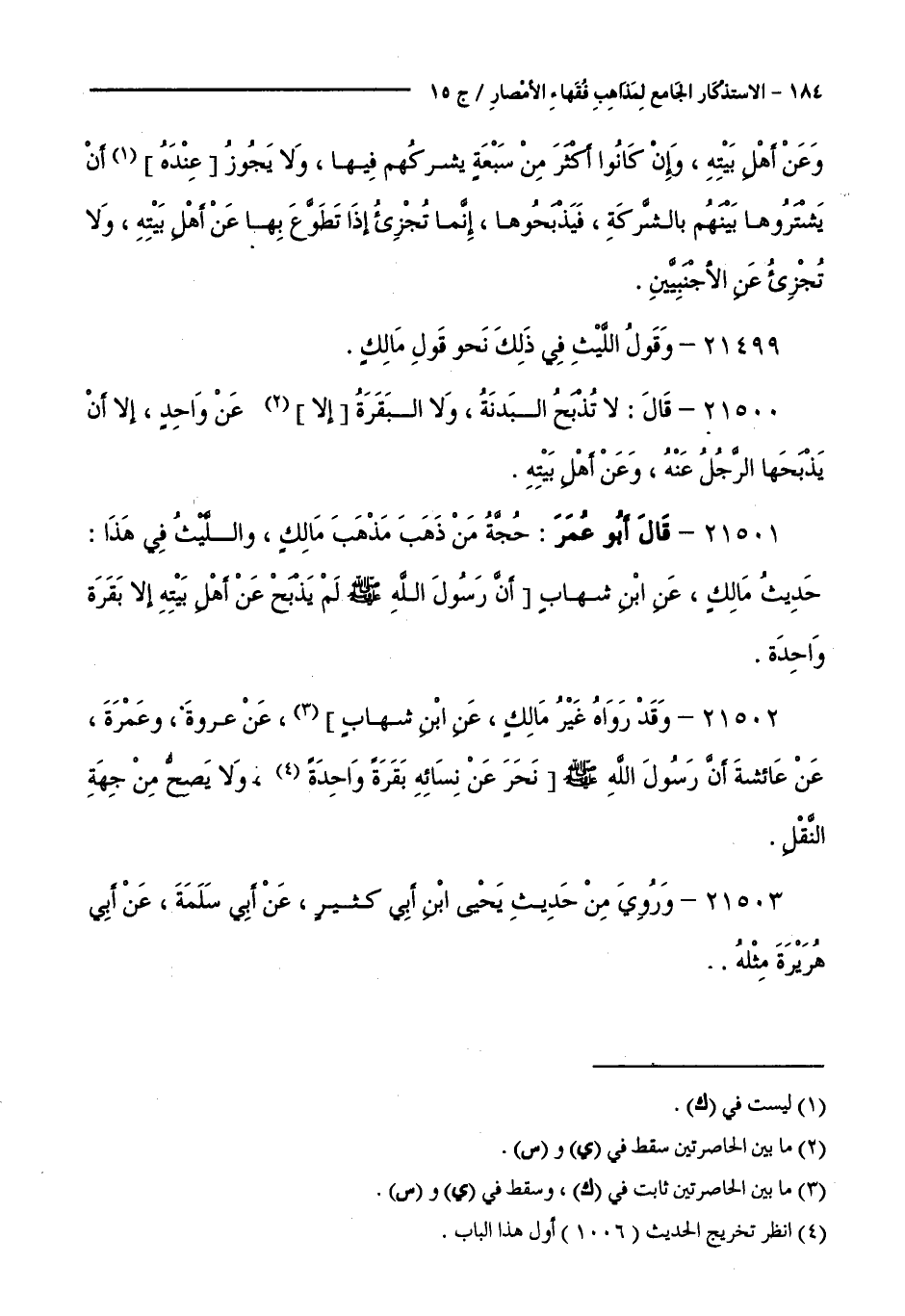 كتاب الاستذكار الجامع لمذاهب فقهاء الأمصار - ت: قلعجي (اسم الجزء: 15)