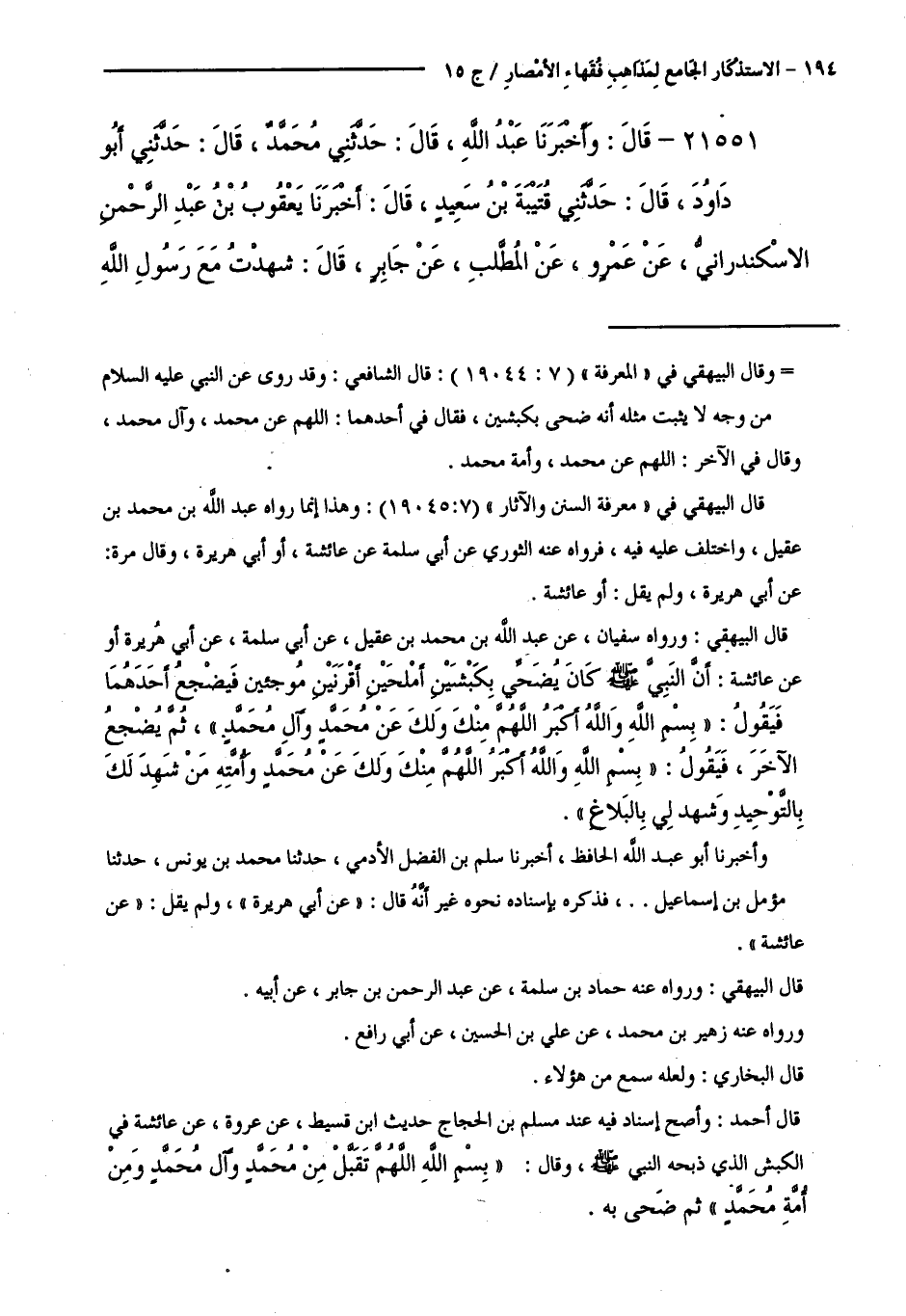 كتاب الاستذكار الجامع لمذاهب فقهاء الأمصار - ت: قلعجي (اسم الجزء: 15)