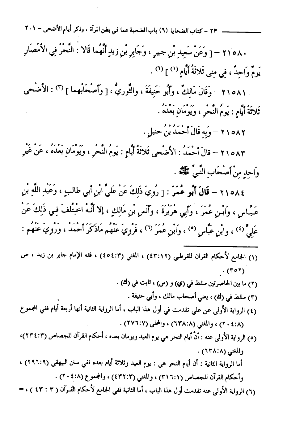 21583 - قَالَ أَحْمَدُ: الْأَضْحَى ثَلَاثَةُ أَيَّامٍ: يَوْمُ النَّحْرِ، وَيَوْمَانِ بَعْدَهُ، عَنْ غَيْرِ وَاحِدٍ مِنْ أَصْحَابِ النَّبِيِّ - صَلَّى اللَّهُ عَلَيْهِ وَسَلَّمَ.