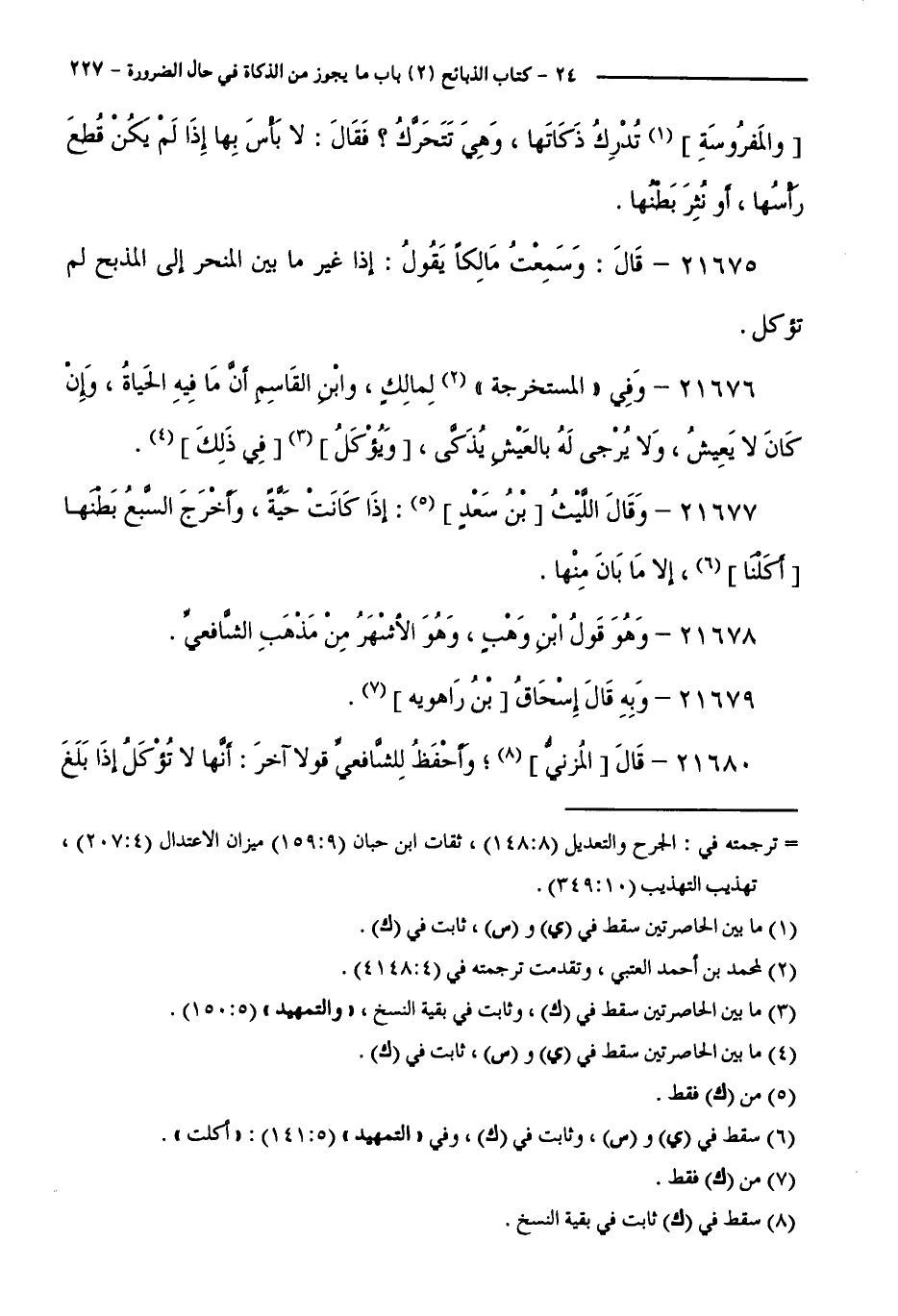 21675 - قَالَ: وَسَمِعْتُ مَالِكًا يَقُولُ: إِذَا غُيِّرَ مَا بَيْنَ الْمَنْحَرِ إِلَى الْمَذْبَحِ لَمْ تُؤْكَلْ.
