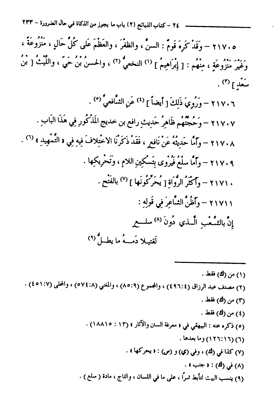21705 - وَقَدْ كَرِهَ قَوْمٌ: السِّنَّ، وَالظُّفُرَ، وَالْعَظْمَ عَلَى كُلِّ حَالٍ، مَنْزُوعَةً، وَغَيْرَ مَنْزُوعَةٍ، مِنْهُمْ: إِبْرَاهِيمُ، وَالْحَسَنُ بْنُ حَيٍّ، وَاللَّيْثُ بْنُ سَعْدٍ.