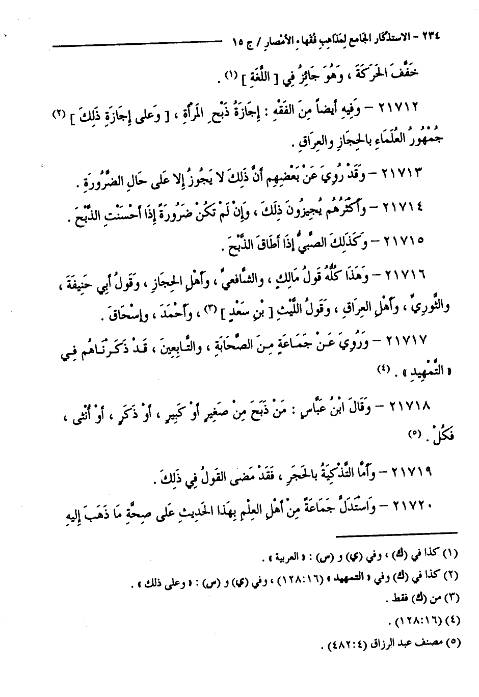 كتاب الاستذكار الجامع لمذاهب فقهاء الأمصار - ت: قلعجي (اسم الجزء: 15)