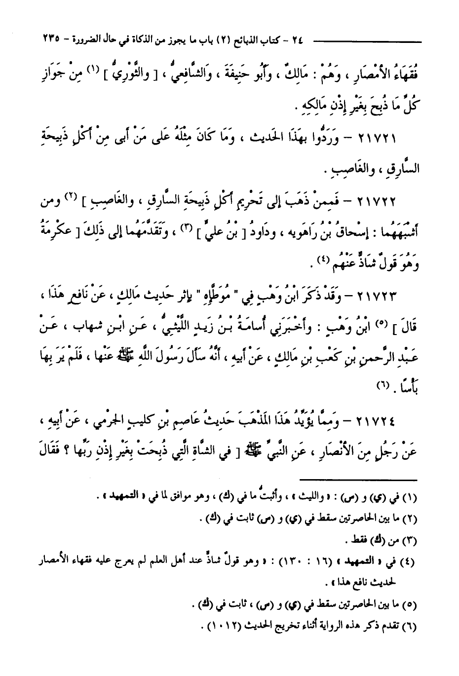 21721 - وَرَدُّوا بِهَذَا الْحَدِيثِ، وَمَا كَانَ مِثْلَهُ عَلَى مَنْ أَبَى مِنْ أَكْلِ ذَبِيحَةِ السَّارِقِ، وَالْغَاصِبِ.