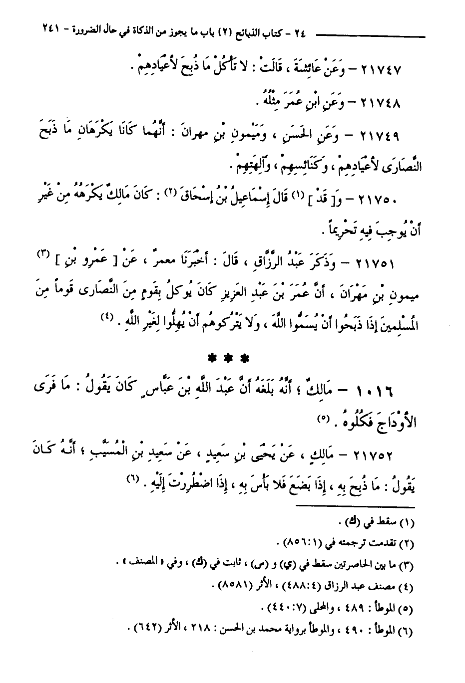 21749 - وَعَنِ الْحَسَنِ، وَمَيْمُونِ بْنِ مِهْرَانَ: أَنَّهُمَا كَانَا يَكْرَهَانِ مَا ذَبَحَ النَّصَارَى لِأَعْيَادِهِمْ، وَكَنَائِسِهِمْ، وَآلِهَتِهِمْ.