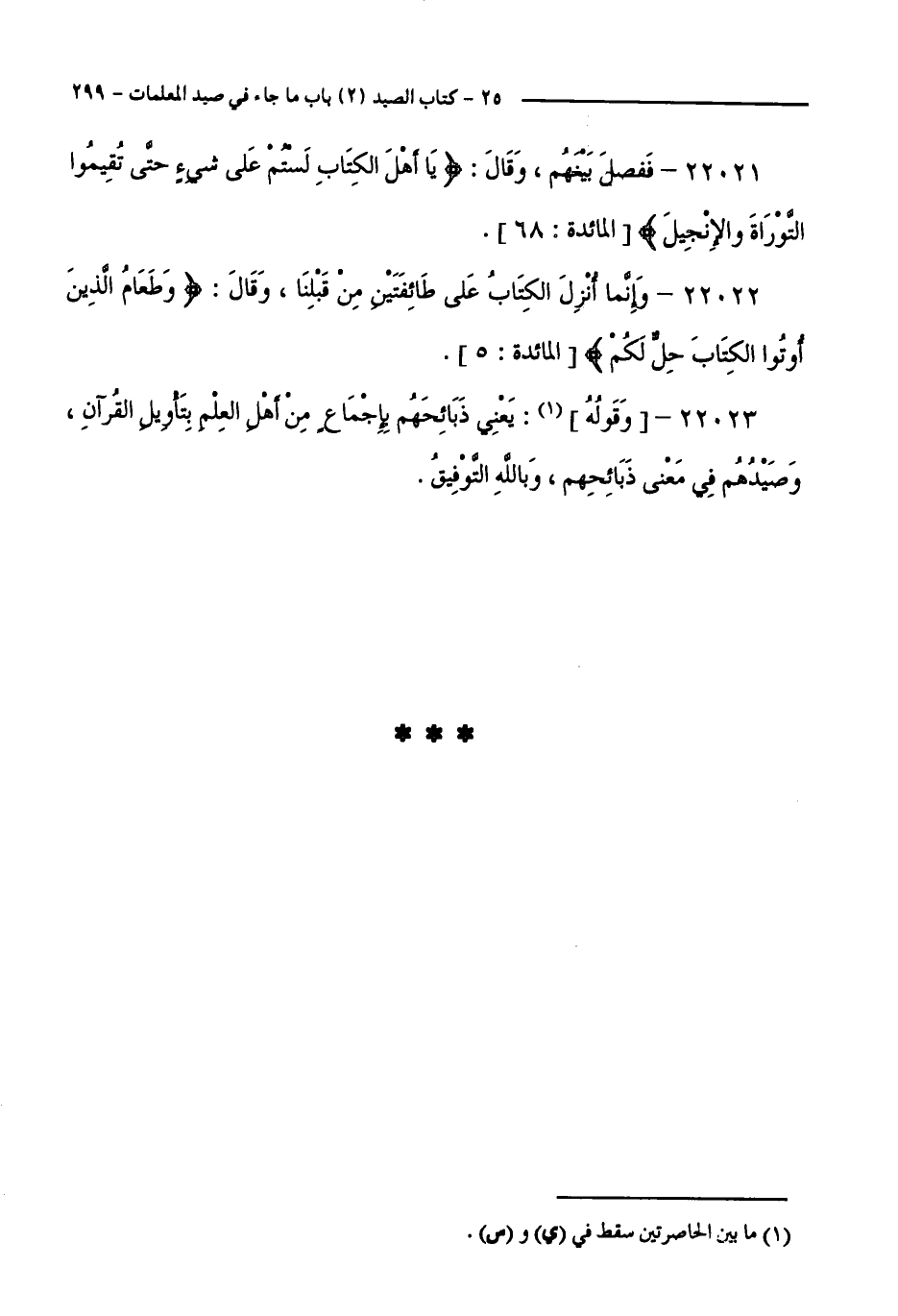 22022 - وَإِنَّمَا أُنْزَلَ الْكِتَابُ عَلَى طَائِفَتَيْنِ مِنْ قَبْلِنَا، وَقَالَ:وَطَعَامُ الَّذِينَ أُوتُوا الْكِتَابَ حِلٌّ لَكُمْ [ الْمَائِدَةِ: 5 ].