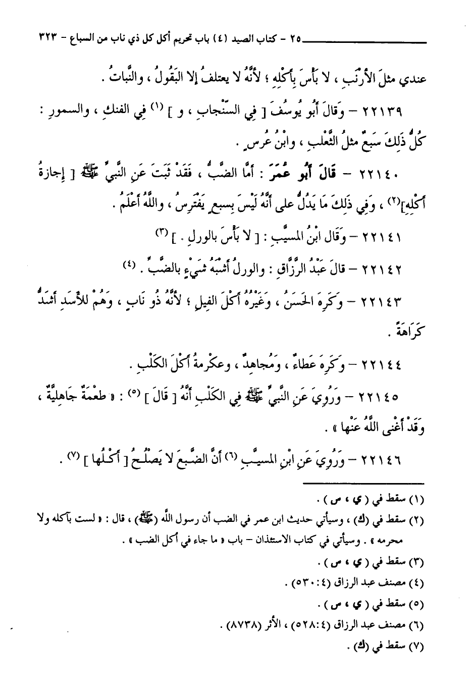 22146 - وَرُوِيَ عَنِ ابْنِ الْمُسَيِّبِ أَنَّ الضَّبُعَ لَا يَصْلُحُ أَكْلُهَا.