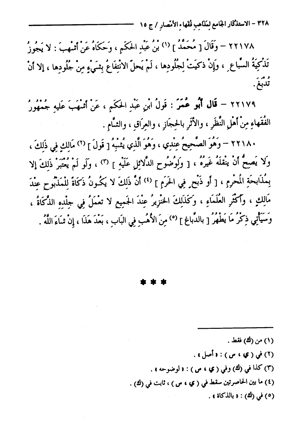 كتاب الاستذكار الجامع لمذاهب فقهاء الأمصار - ت: قلعجي (اسم الجزء: 15)