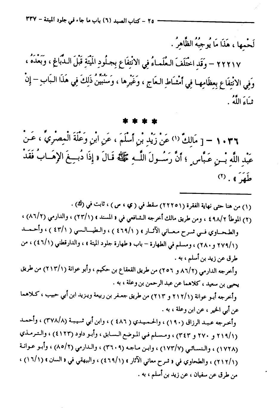 1036 - مَالِكٌ عَنْ زَيْدِ بْنِ أَسْلَمَ، عَنِ ابْنِ وَعْلَةَ الْمِصْرِيِّ، عَنْ عَبْدِ اللَّهِ بْنِ عَبَّاسٍ، أَنَّ رَسُولَ اللَّهِ - صَلَّى اللَّهُ عَلَيْهِ وَسَلَّمَ - قَالَ " إِذَا دُبِغَ الْإِهَابُ فَقَدْ طَهُرَ ".