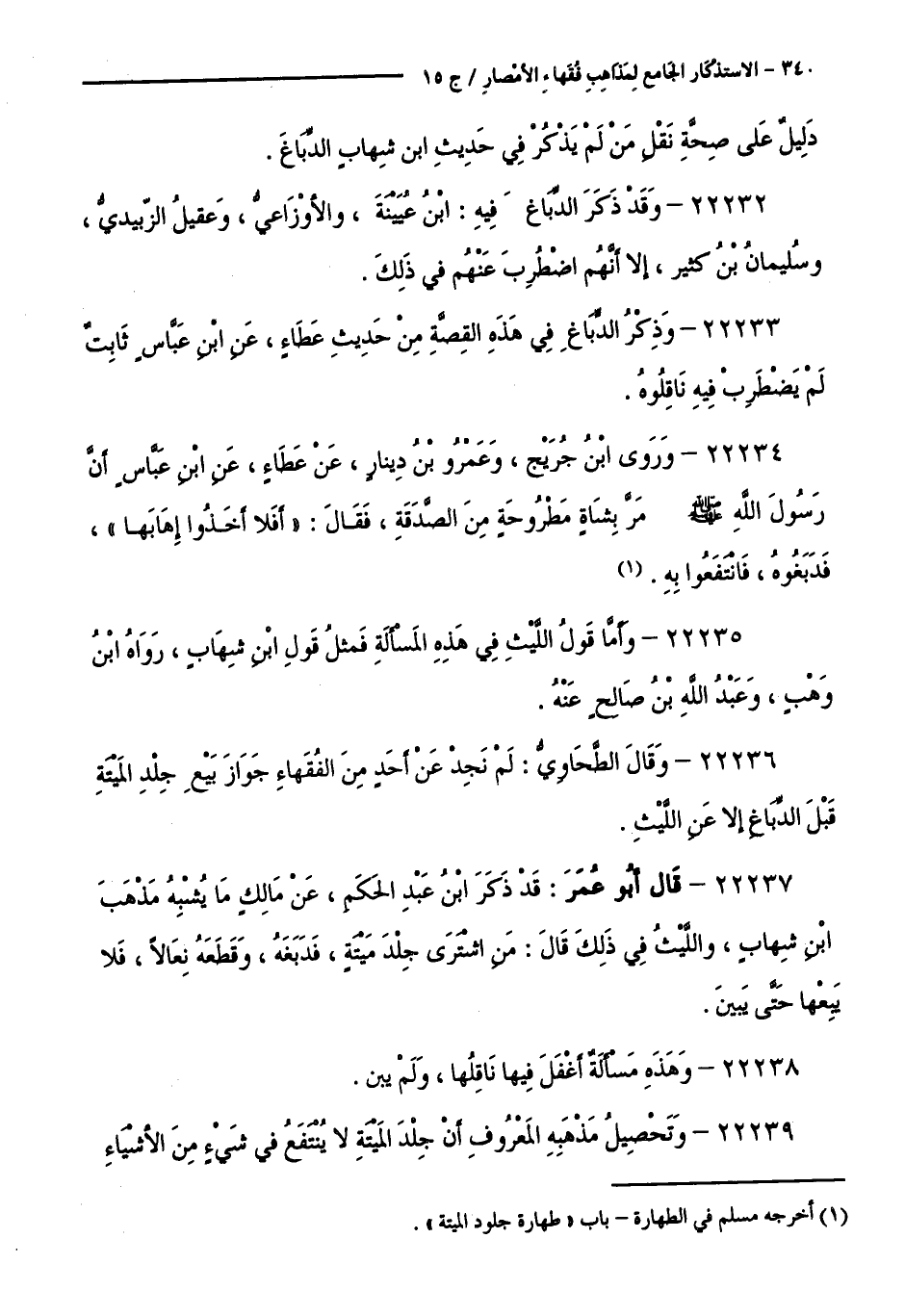 كتاب الاستذكار الجامع لمذاهب فقهاء الأمصار - ت: قلعجي (اسم الجزء: 15)