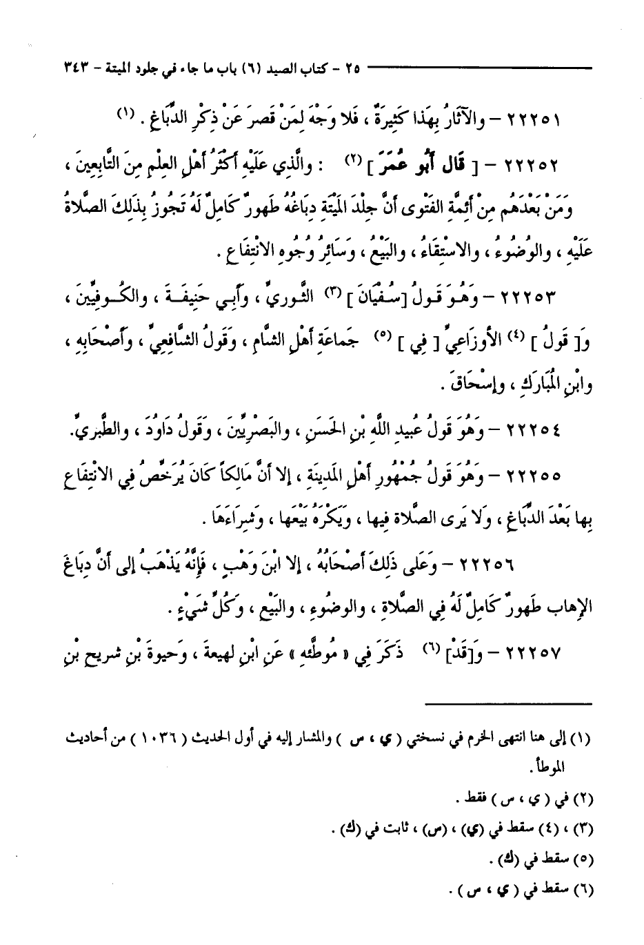 22251 - وَالْآثَارُ بِهَذَا كَثِيرَةٌ، فَلَا وَجْهَ لِمَنْ قَصَّرَ عَنْ ذِكْرِ الدِّبَاغِ.