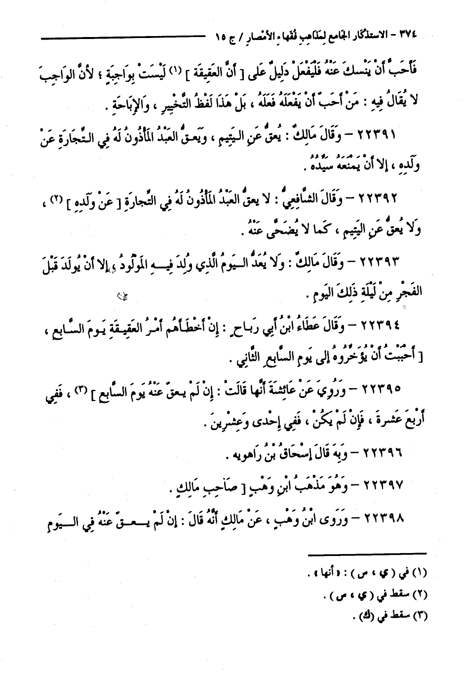 كتاب الاستذكار الجامع لمذاهب فقهاء الأمصار - ت: قلعجي (اسم الجزء: 15)
