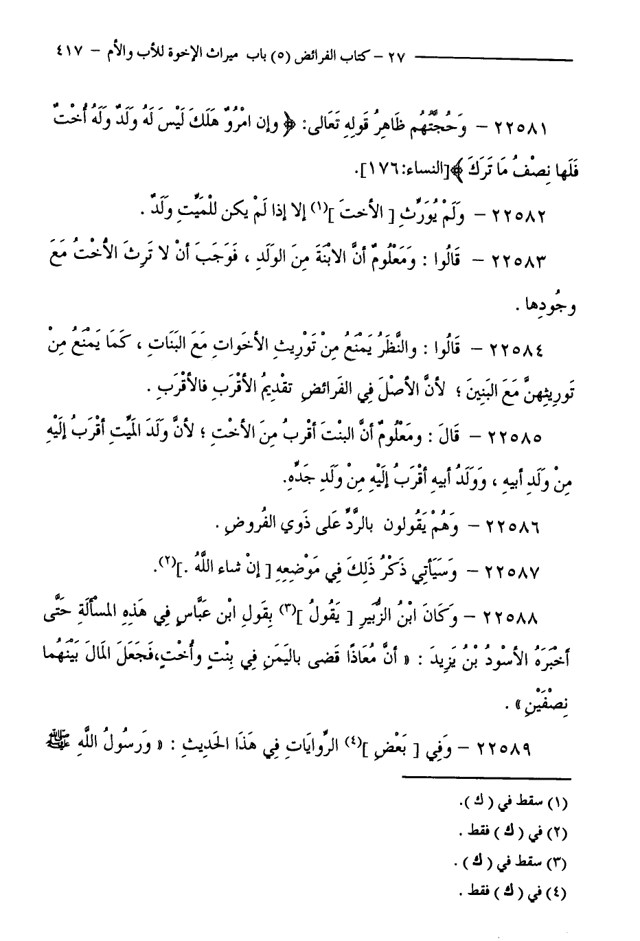 22586 - وَهُمْ يَقُولُونَ بِالرَّدِّ عَلَى ذَوِي الْفُرُوضِ.