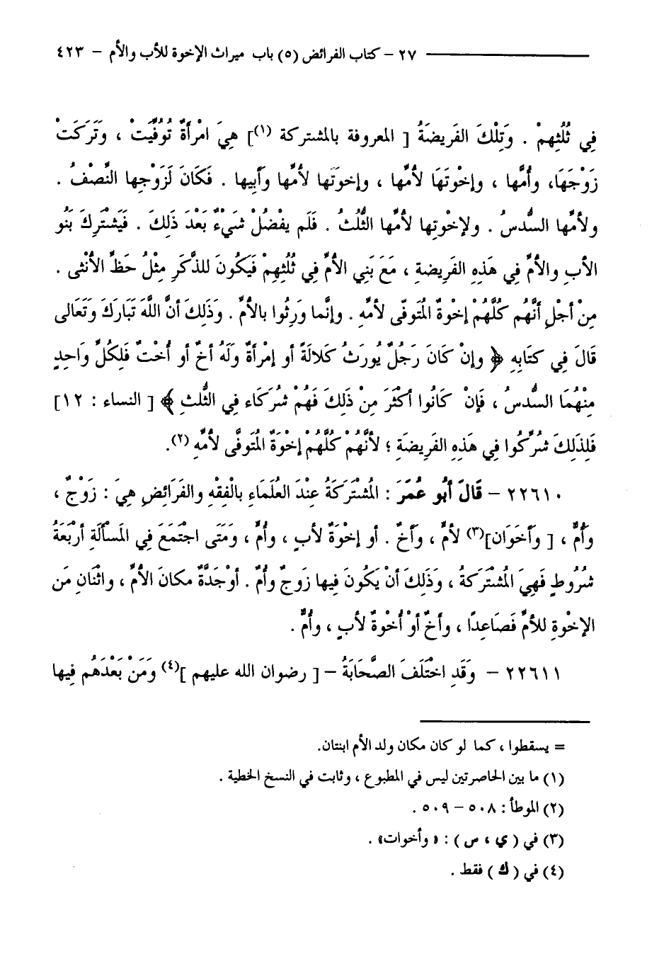 22611 - وَقَدِ اخْتَلَفَ الصَّحَابَةُ - رِضْوَانُ اللَّهِ عَلَيْهِمْ وَمَنْ بَعْدَهُمْ فِيهَا.
