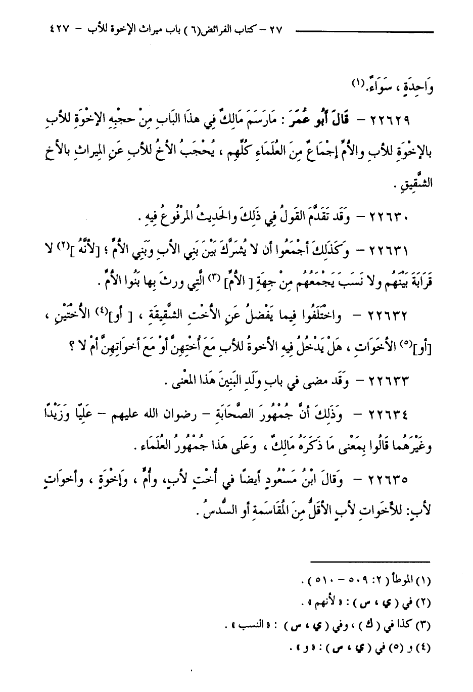 22635 - وَقَالَ ابْنُ مَسْعُودٍ أَيْضًا فِي أُخْتٍ لِأَبٍ، وَأُمٍّ، وَإِخْوَةٍ، وَأَخَوَاتٍ لِأَبٍ: لِلْأَخَوَاتِ لِأَبٍ الْأَقَلُّ مِنَ الْمُقَاسَمَةِ أَوِ السُّدُسُ.
