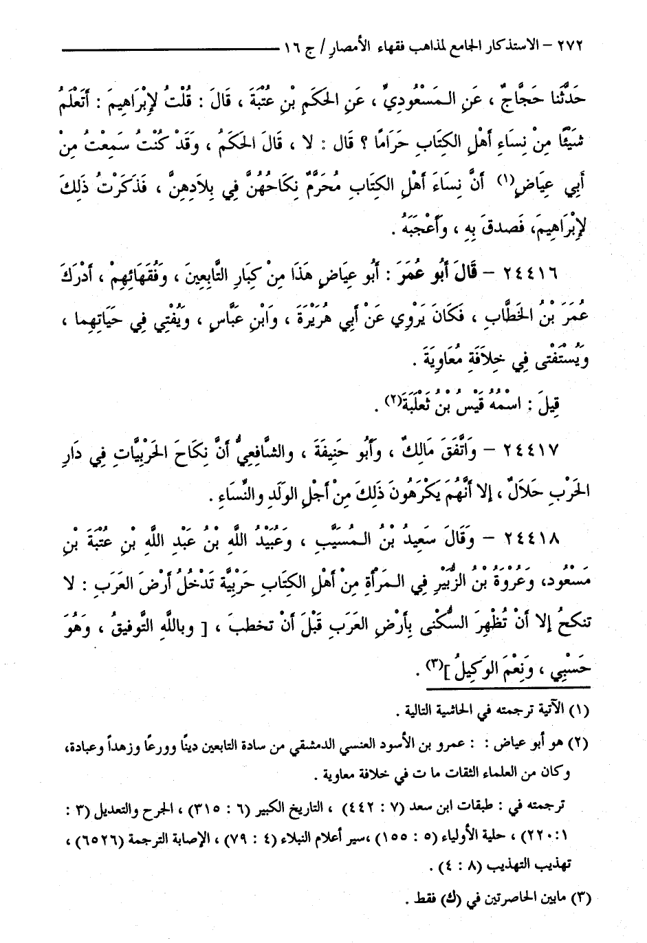 كتاب الاستذكار الجامع لمذاهب فقهاء الأمصار - ت: قلعجي (اسم الجزء: 16)