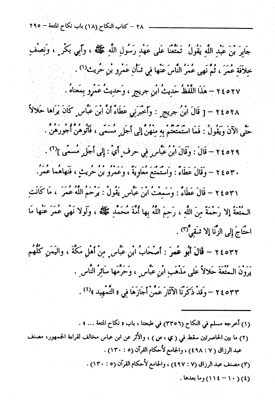 24528 - قَالَ ابْنُ جُرَيْجٍ: وَأَخْبَرَنِي عَطَاءٌ أَنَّ ابْنَ عَبَّاسٍ كَانَ يَرَاهَا حَلَالًا حَتَّى الْآنَ وَيَقُولُ: فَمَا اسْتَمْتَعْتُمْ بِهِ مِنْهُنَّ إِلَى أَجَلٍ مُسَمًّى، فَأْتُوهُنَّ أُجُورَهُنَّ.