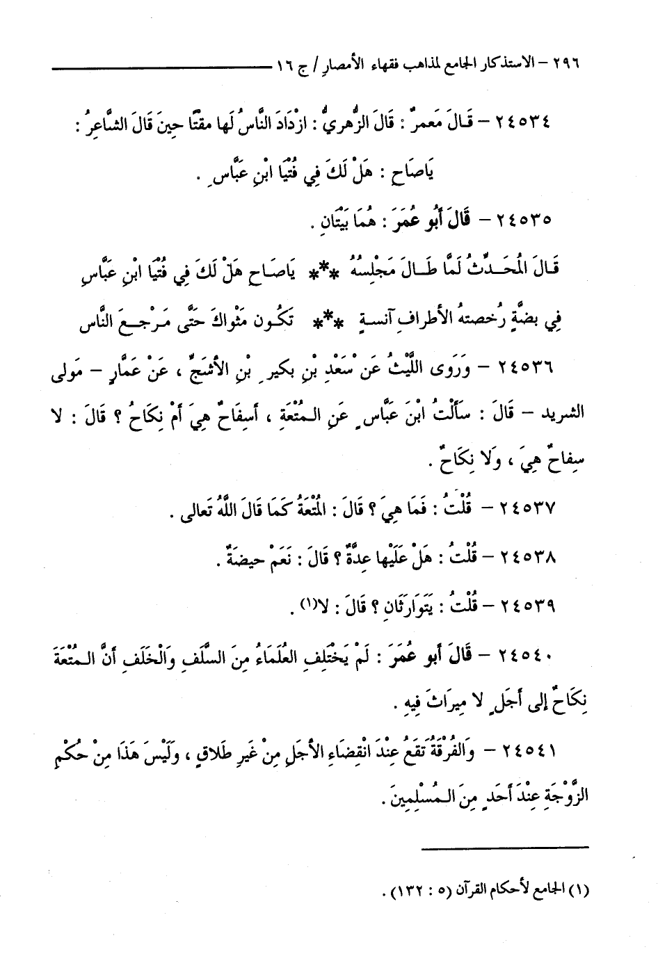 كتاب الاستذكار الجامع لمذاهب فقهاء الأمصار - ت: قلعجي (اسم الجزء: 16)