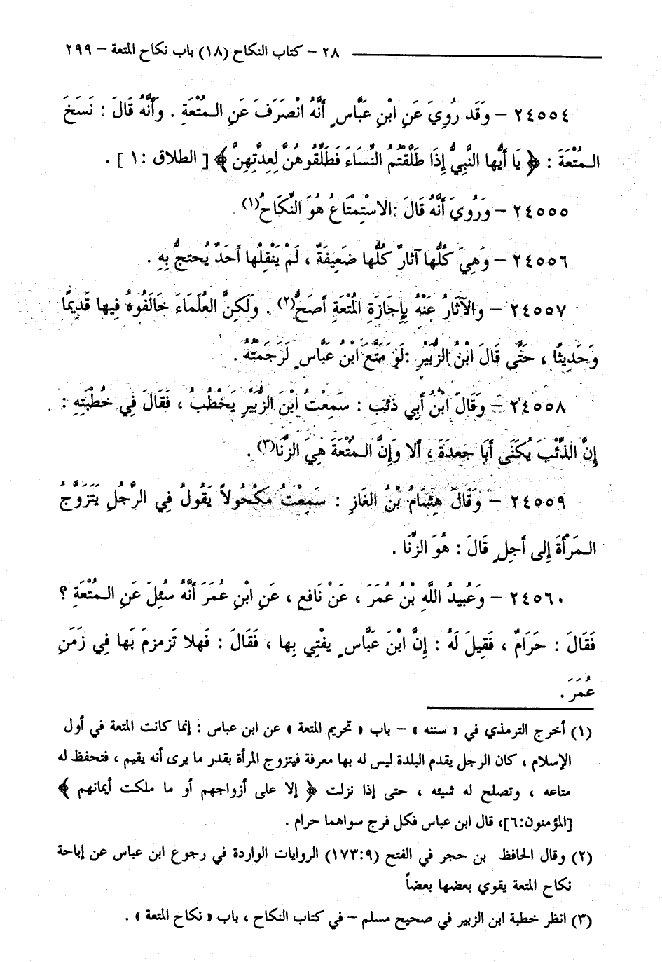 24557 - وَالْآثَارُ عَنْهُ بِإِجَازَةِ الْمُتْعَةِ أَصَحُّ. وَلَكِنَّ الْعُلَمَاءَ خَالَفُوهُ فِيهَا قَدِيمًا وَحَدِيثًا، حَتَّى قَالَ ابْنُ الزُّبَيْرِ: لَوْ مَتَّعَ ابْنُ عَبَّاسٍ لَرَجَمْتُهُ.