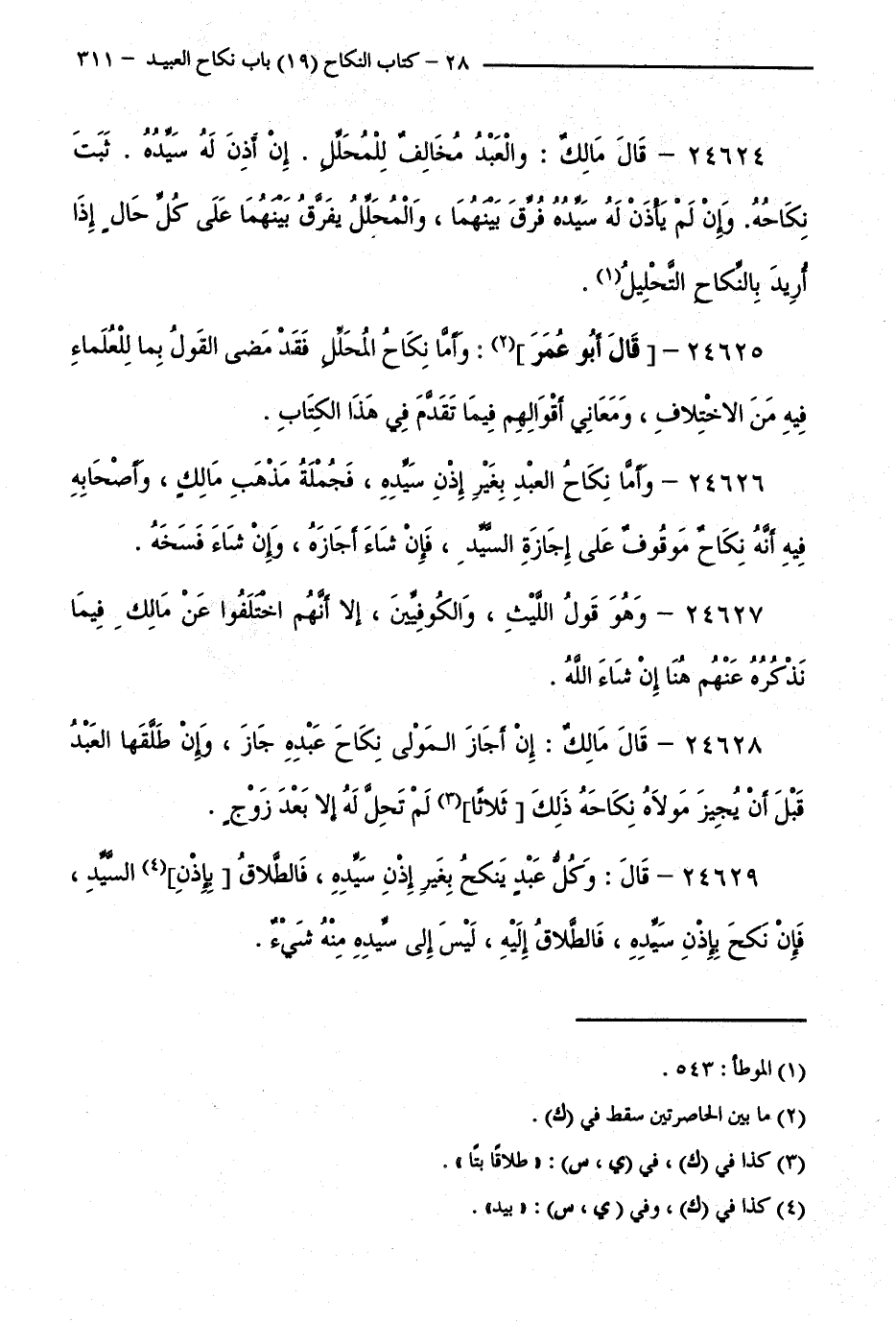 24629 - قَالَ: وَكُلُّ عَبْدٍ يَنْكِحُ بِغَيْرِ إِذْنِ سَيِّدِهِ، فَالطَّلَاقُ بِإِذْنِ السَّيِّدِ، فَإِنْ نَكَحَ بِإِذْنِ سَيِّدِهِ، فَالطَّلَاقُ إِلَيْهِ، لَيْسَ إِلَى سَيِّدِهِ مِنْهُ شَيْءٌ.