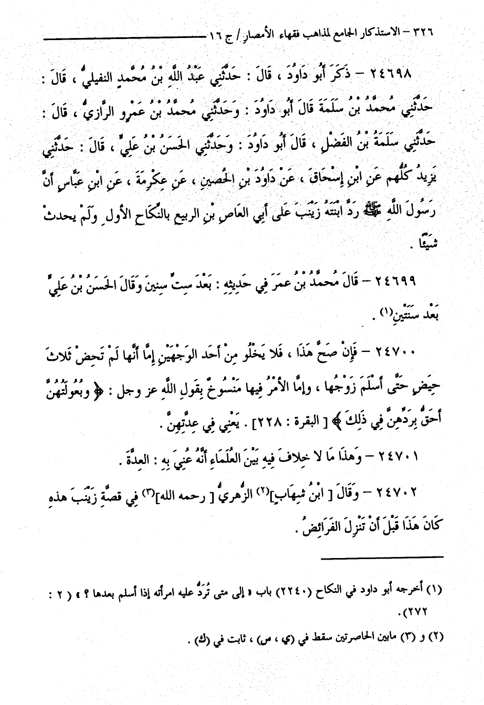 كتاب الاستذكار الجامع لمذاهب فقهاء الأمصار - ت: قلعجي (اسم الجزء: 16)