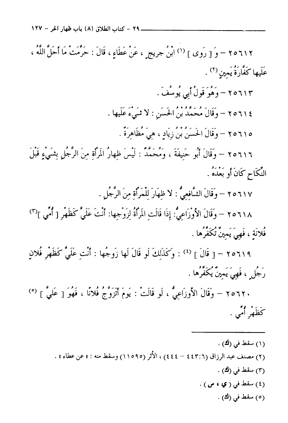 25618 - وَقَالَ الْأَوْزَاعِيُّ: إِذَا قَالَتِ الْمَرْأَةُ لِزَوْجِهَا: أَنْتَ عَلَيَّ كَظَهْرِ أُمِّي فُلَانَةَ، فَهِيَ يَمِينٌ تُكَفِّرُهَا.