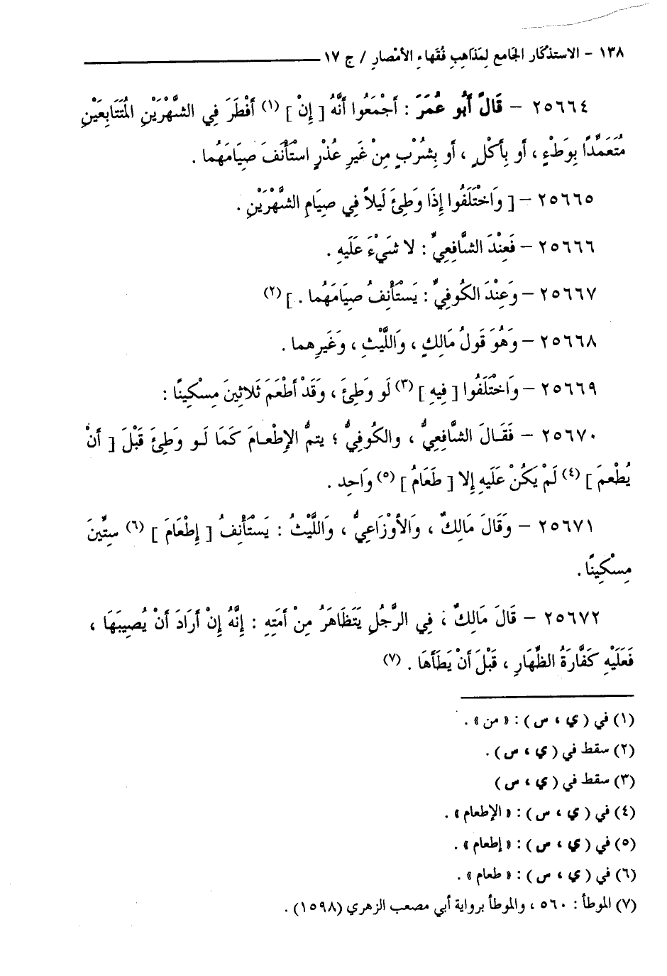 كتاب الاستذكار الجامع لمذاهب فقهاء الأمصار - ت: قلعجي (اسم الجزء: 17)