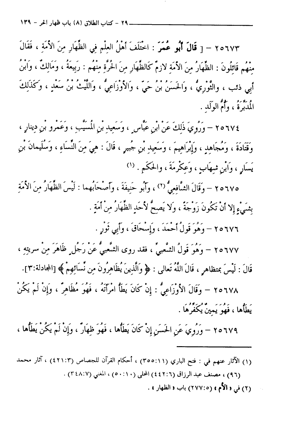 25675 - وَقَالَ الشَّافِعِيُّ: وَأَبُو حَنِيفَةَ، وَأَصْحَابُهُمَا: لَيْسَ الظِّهَارُ مِنَ الْأَمَةِ بِشَيْءٍ إِلَّا أَنْ تَكُونَ زَوْجَةً، وَلَا يَصِحُّ لِأَحَدٍ الظِّهَارُ مِنْ أَمَةٍ.