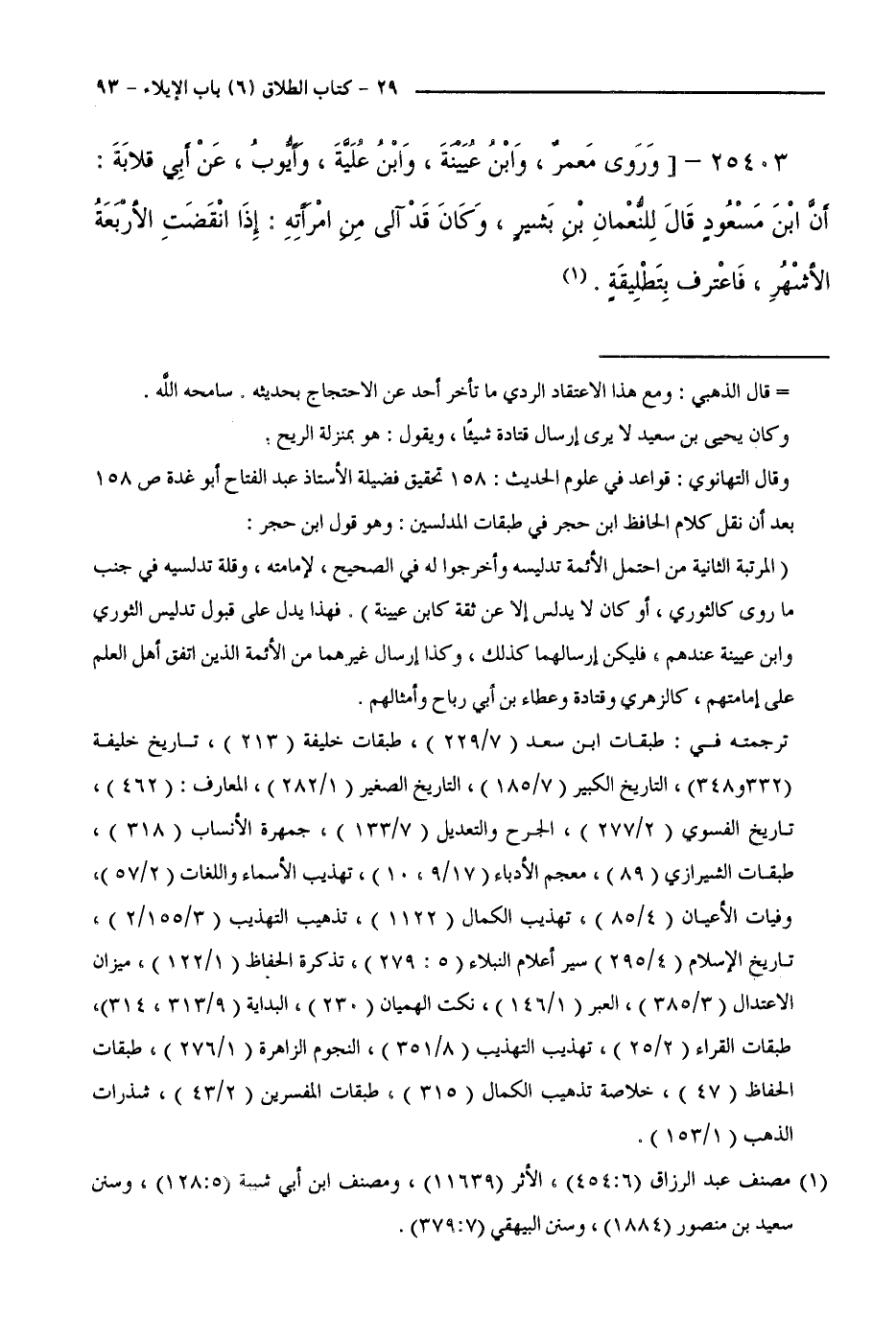 25403 - وَرَوَى مَعْمَرٌ، وَابْنُ عُيَيْنَةَ، وَابْنُ عُلَيَّةَ، وَأَيُّوبُ، عَنْ أَبِي قِلَابَةَ: أَنَّ ابْنَ مَسْعُودٍ قَالَ لِلنُّعْمَانِ بْنِ بَشِيرٍ، وَكَانَ قَدْ آلَى مِنَ امْرَأَتِهِ: إِذَا انْقَضَتِ الْأَرْبَعَةُ الْأَشْهُرِ، فَاعْتَرِفْ بِتَطْلِيقَةٍ.