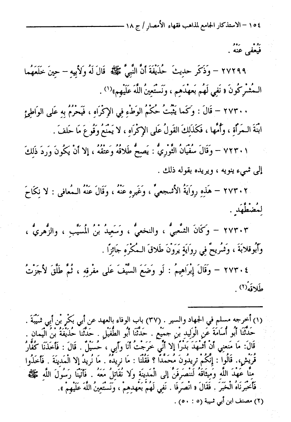 27299 - وَذَكَرَ حَدِيثَ حُذَيْفَةَ أَنَّ النَّبِيَّ - صَلَّى اللَّهُ عَلَيْهِ وَسَلَّمَ - قَالَ لَهُ وَلِأَبِيهِ - حِينَ خَلَعَهُمَا الْمُشْرِكُونَ "نَفِي لَهُمْ بِعَهْدِهِمْ، وَنَسْتَعِينُ اللَّهَ عَلَيْهِمْ ".