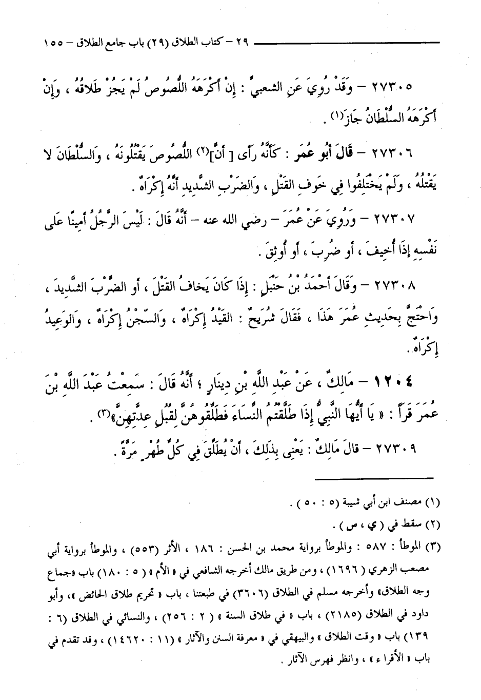 27308 - وَقَالَ أَحْمَدُ بْنُ حَنْبَلٍ: إِذَا كَانَ يَخَافُ الْقَتْلَ، أَوِ الضَّرْبَ الشَّدِيدَ، وَاحْتَجَّ بِحَدِيثِ عُمَرَ هَذَا، فَقَالَ شُرَيْحٌ: الْقَيْدُ إِكْرَاهٌ، وَالسِّجْنُ إِكْرَاهٌ، وَالْوَعِيدُ إِكْرَاهٌ.